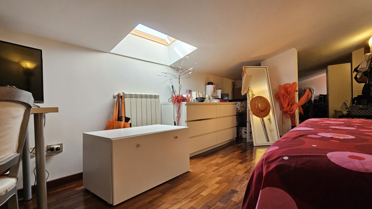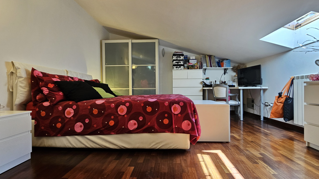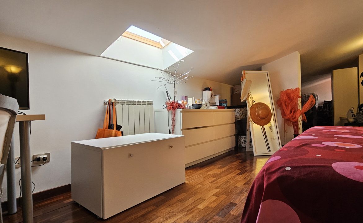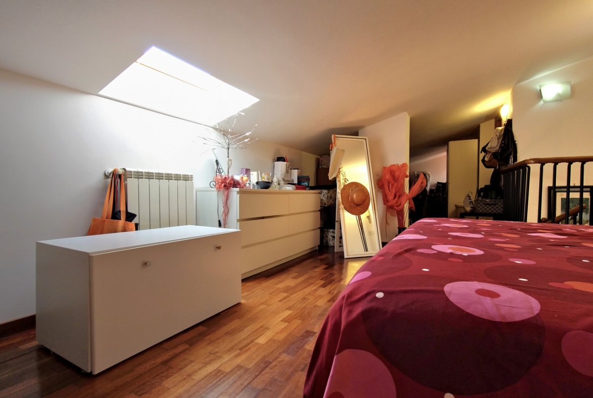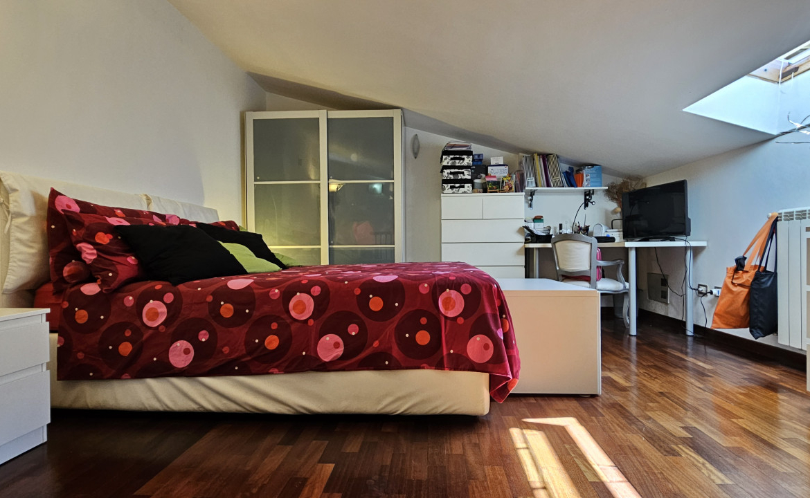 Salendo la scala a chiocciola, vi troverete nella mansarda: un ampio open space suddiviso in due zone che offre infinite possibilità. Può essere la vostra camera matrimoniale con un’area dedicata allo studio + cabina armadio, oppure uno spazio perfetto per i ragazzi, dove possono dormire, studiare e divertirsi. Anche qui troverete un elegante bagno moderno con doccia, completo di finestra.