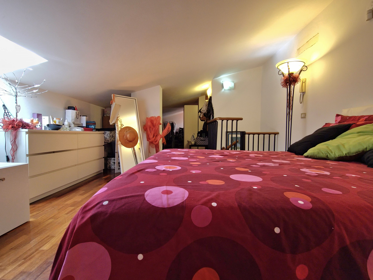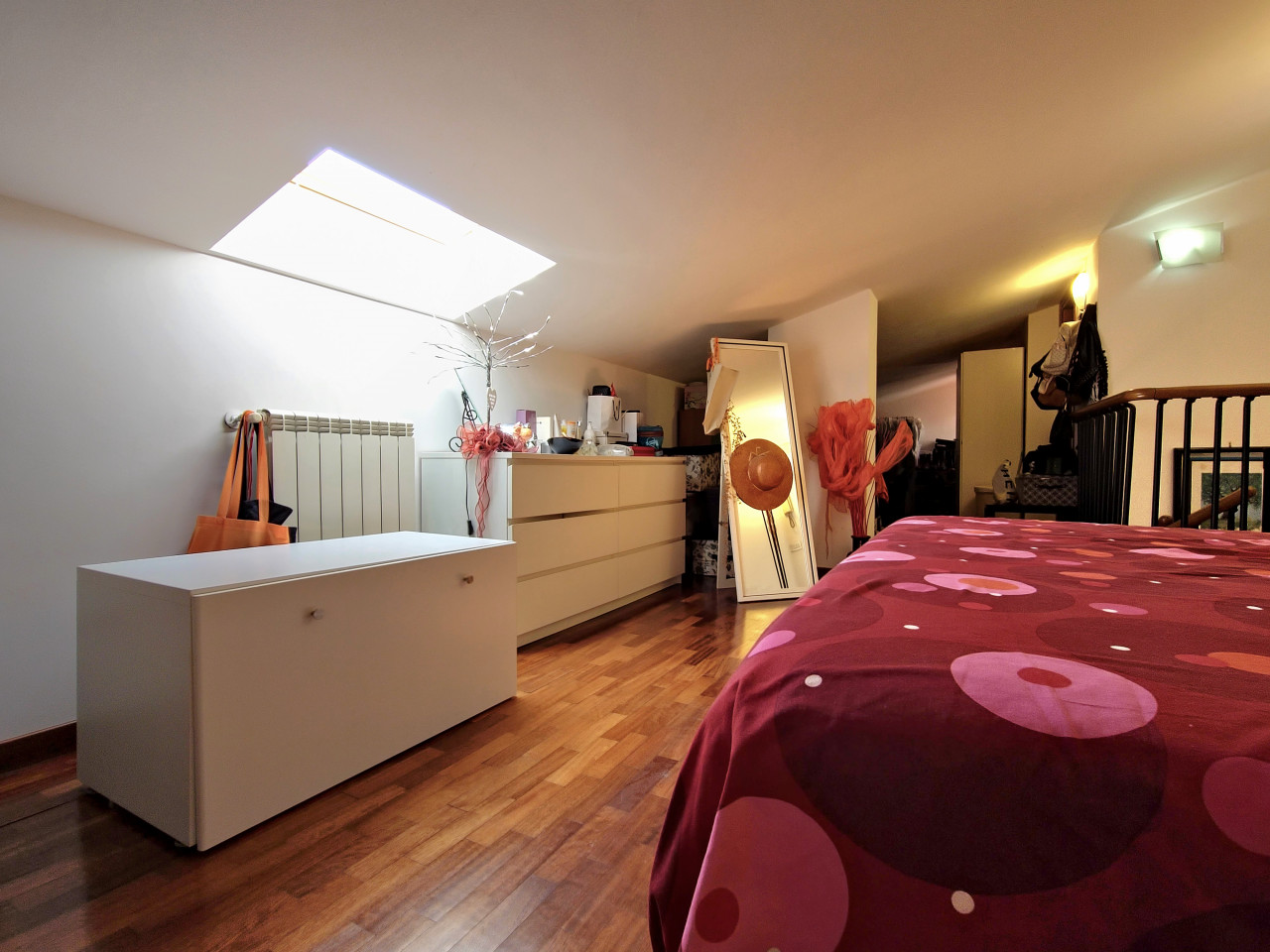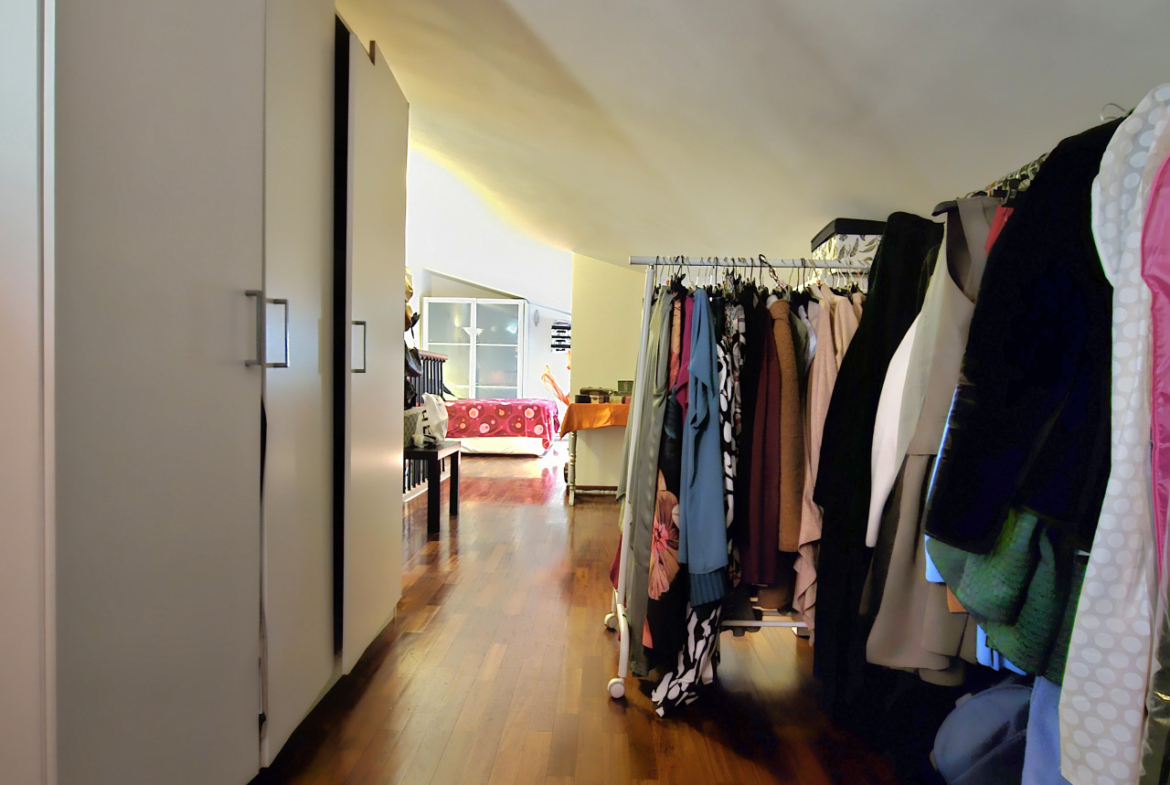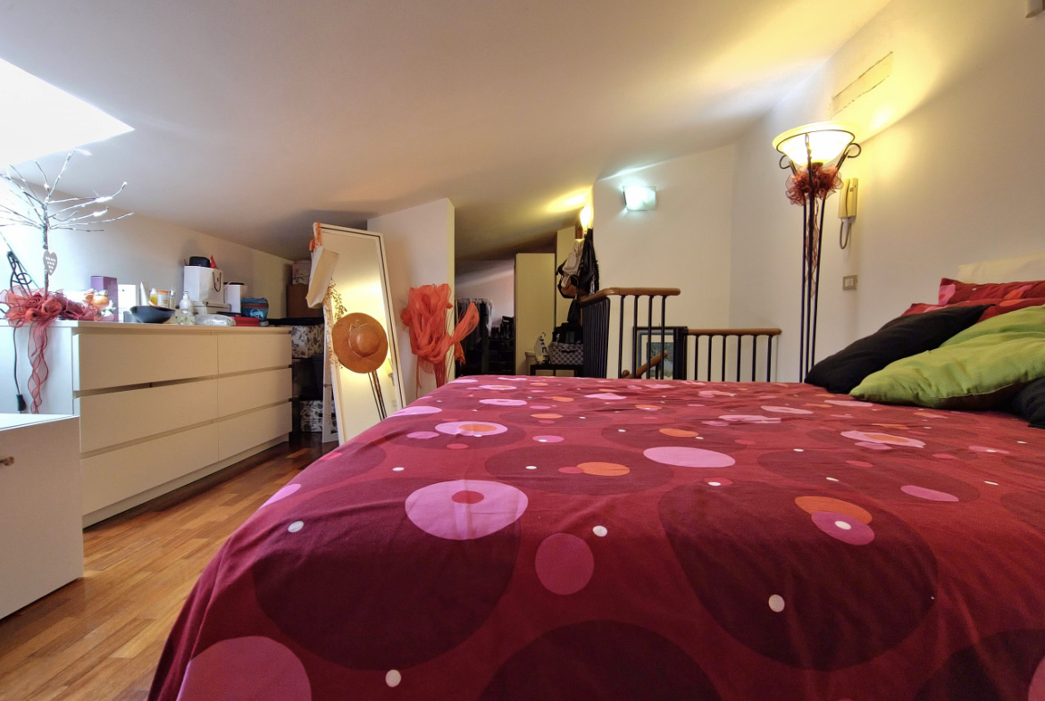 Salendo la scala a chiocciola, vi troverete nella mansarda: un ampio open space suddiviso in due zone che offre infinite possibilità. Può essere la vostra camera matrimoniale con un’area dedicata allo studio + cabina armadio, oppure uno spazio perfetto per i ragazzi, dove possono dormire, studiare e divertirsi. Anche qui troverete un elegante bagno moderno con doccia, completo di finestra.
