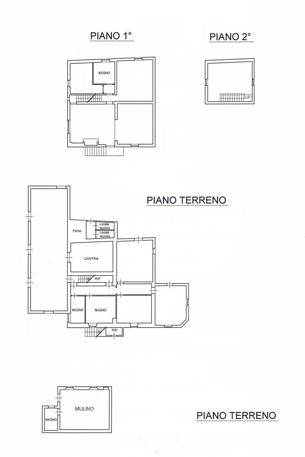 Al piano superiore, con accesso sia da scala interna che da secondo ingresso esterno, si accede a un ampio salone doppio con camino del 1500 originale e cucina in muratura, annessa sala pranzo, disimpegno, 2 camere matrimoniali e bagno con doccia.