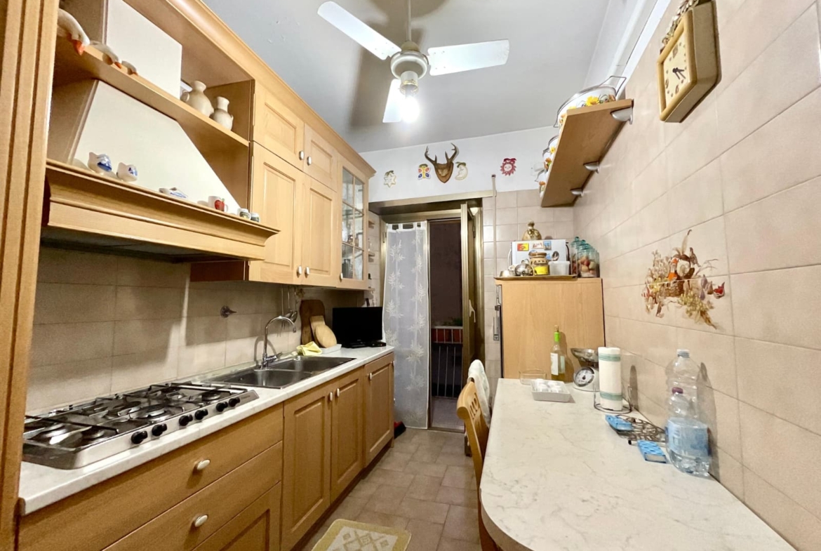 Dal balcone si accede dalla cucina e da una delle camere. Il secondo bagno finestrato, più spazioso, è dotato di una comoda vasca.