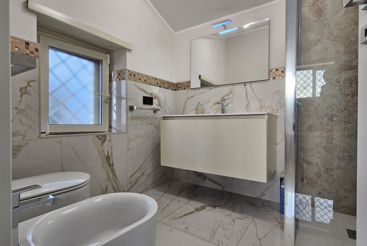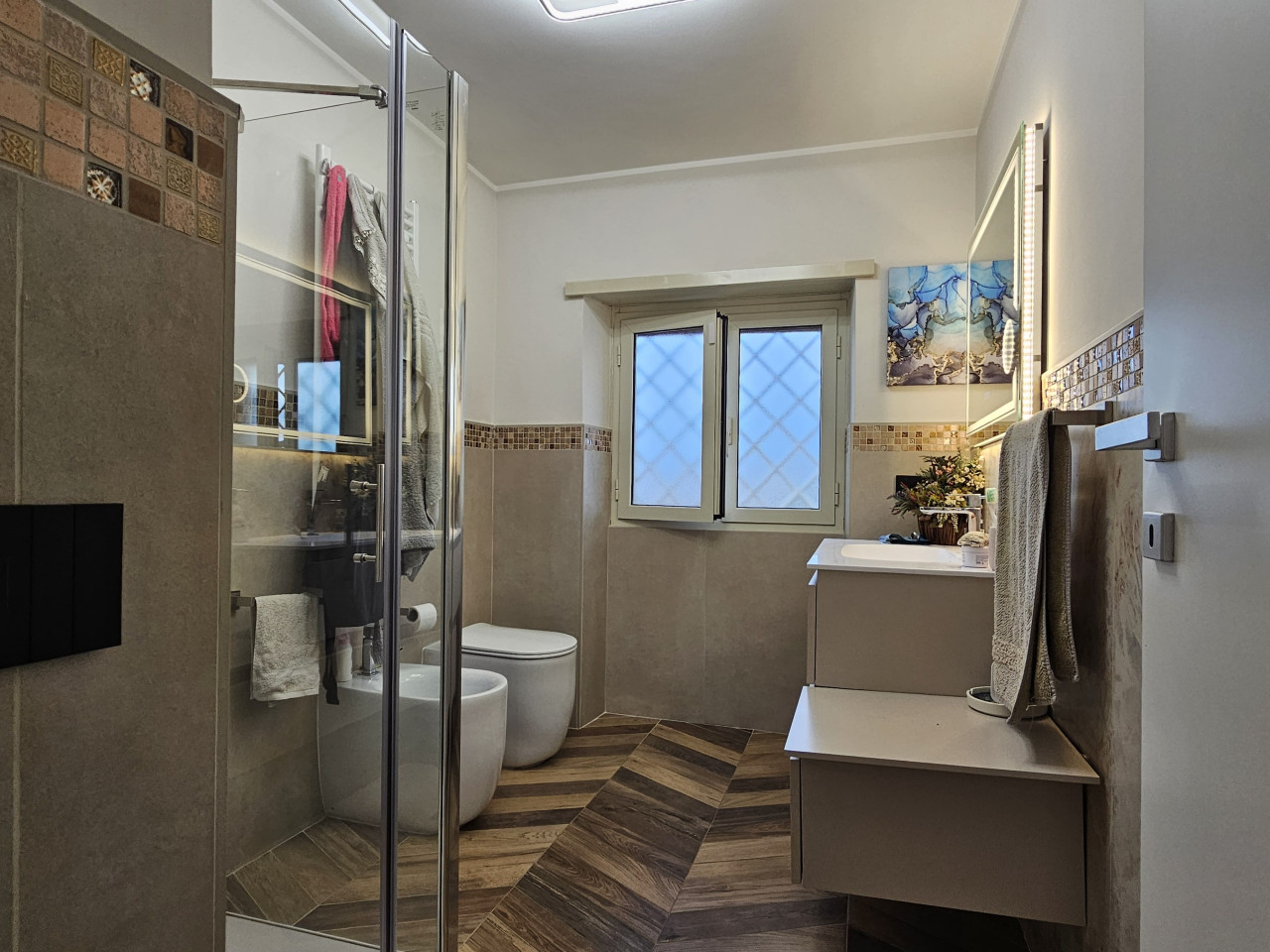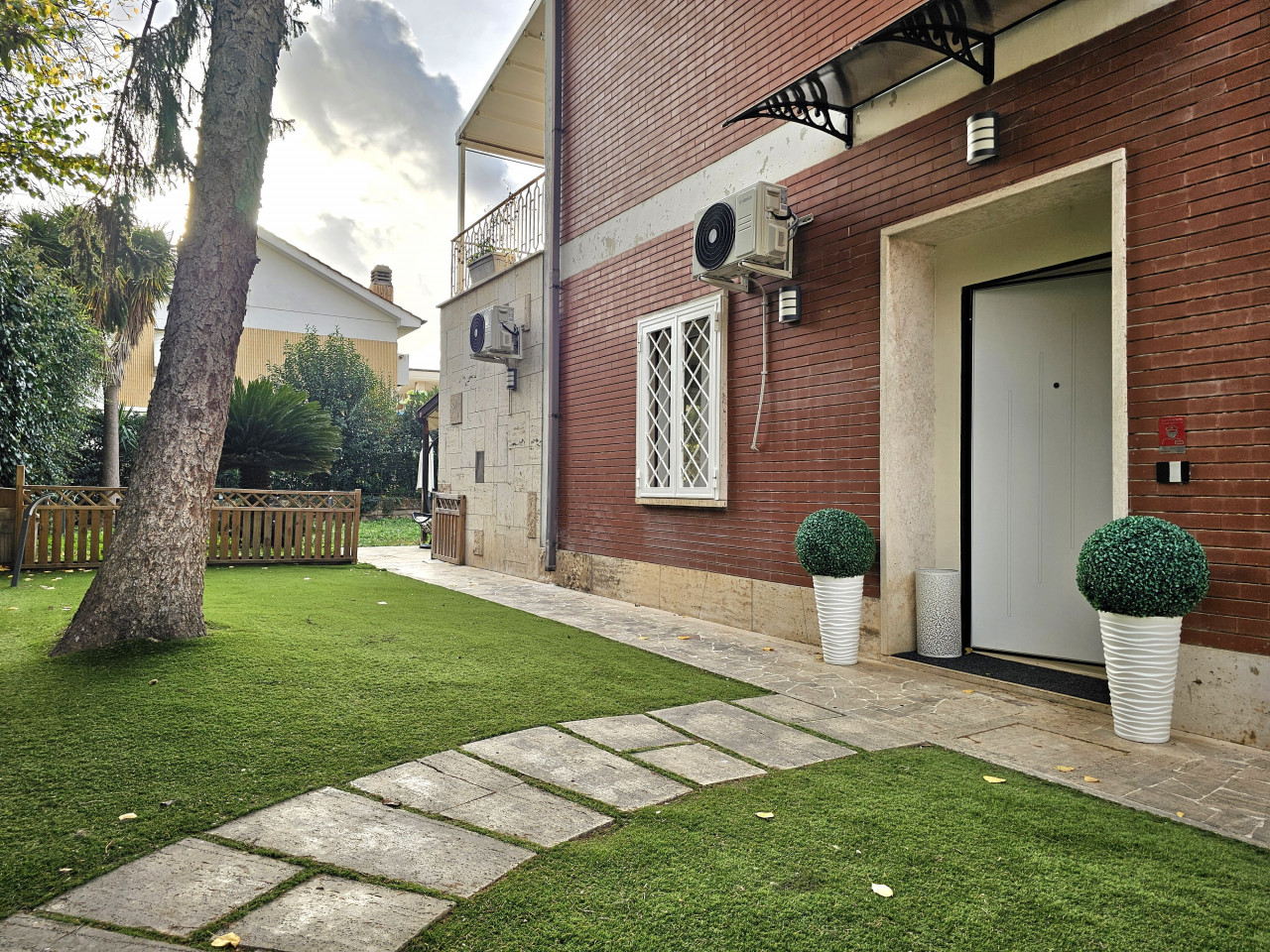 | ALTRE CARATTERISTICHE | Porta blindata, area fitness, Balcone, Terrazza, Tende da sole, zanzariere, Impianto tv centralizzato,Infissi esterni in vetro / PVC, Esposizione doppia, Garage e posto auto. Giardino 180mq. |