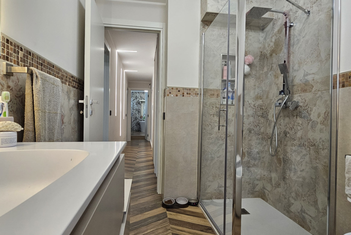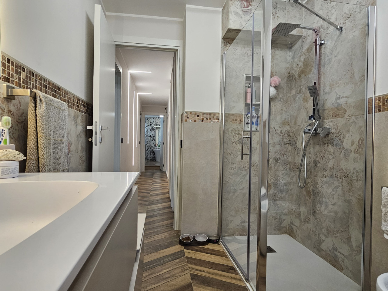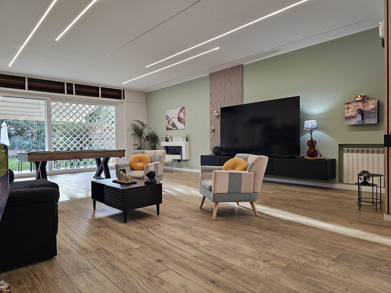 | ALTRE CARATTERISTICHE | Porta blindata, area fitness, Balcone, Terrazza, Tende da sole, zanzariere, Impianto tv centralizzato,Infissi esterni in vetro / PVC, Esposizione doppia, Garage e posto auto. Giardino 180mq. |
