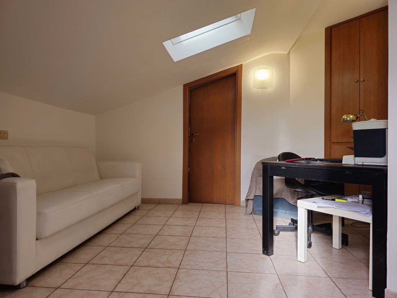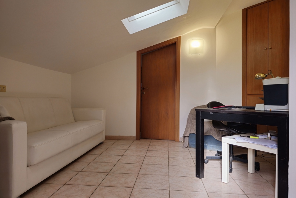 La casa si completa con il piano superiore, dove una stanza ti avvicina al cielo, grazie alla presenza di una finestra Velux sul tetto e un balcone abitabile che ti offre un altro angolo da esplorare con una vista panoramica nel verde. Qui un comodo bagno con ampia doccia completa questo piano che potrai vivere come romantica zona notte oppure come una riservata zona studio.