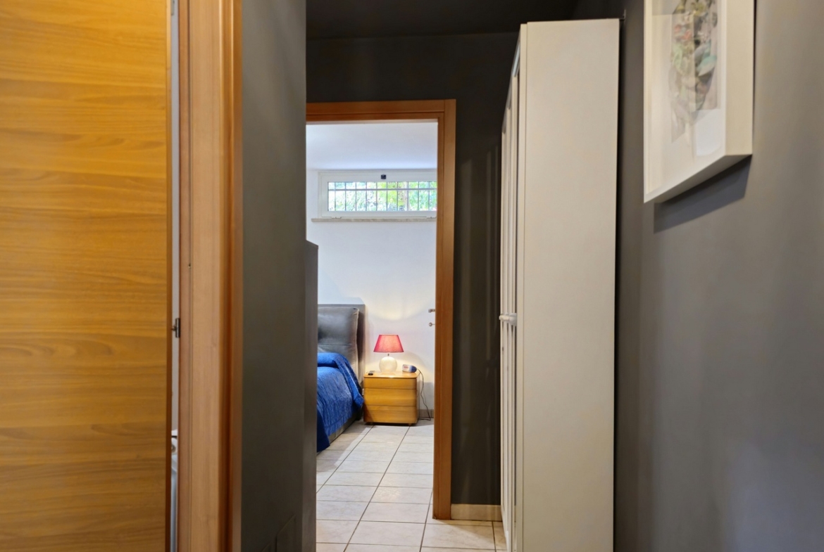 Immagina di risvegliarti in una delle due camere al piano seminterrato, dove la luce del mattino filtra delicatamente attraverso le finestre posizionate in alto, creando un’atmosfera intima e rilassante. La presenza dell’intercapedine, sapientemente utilizzata come lavanderia, garantisce un ambiente confortevole sempre asciutto e salubre.