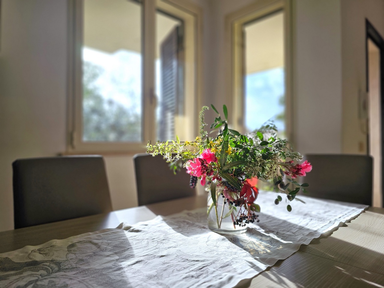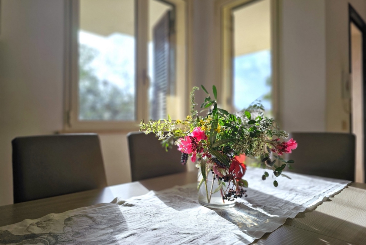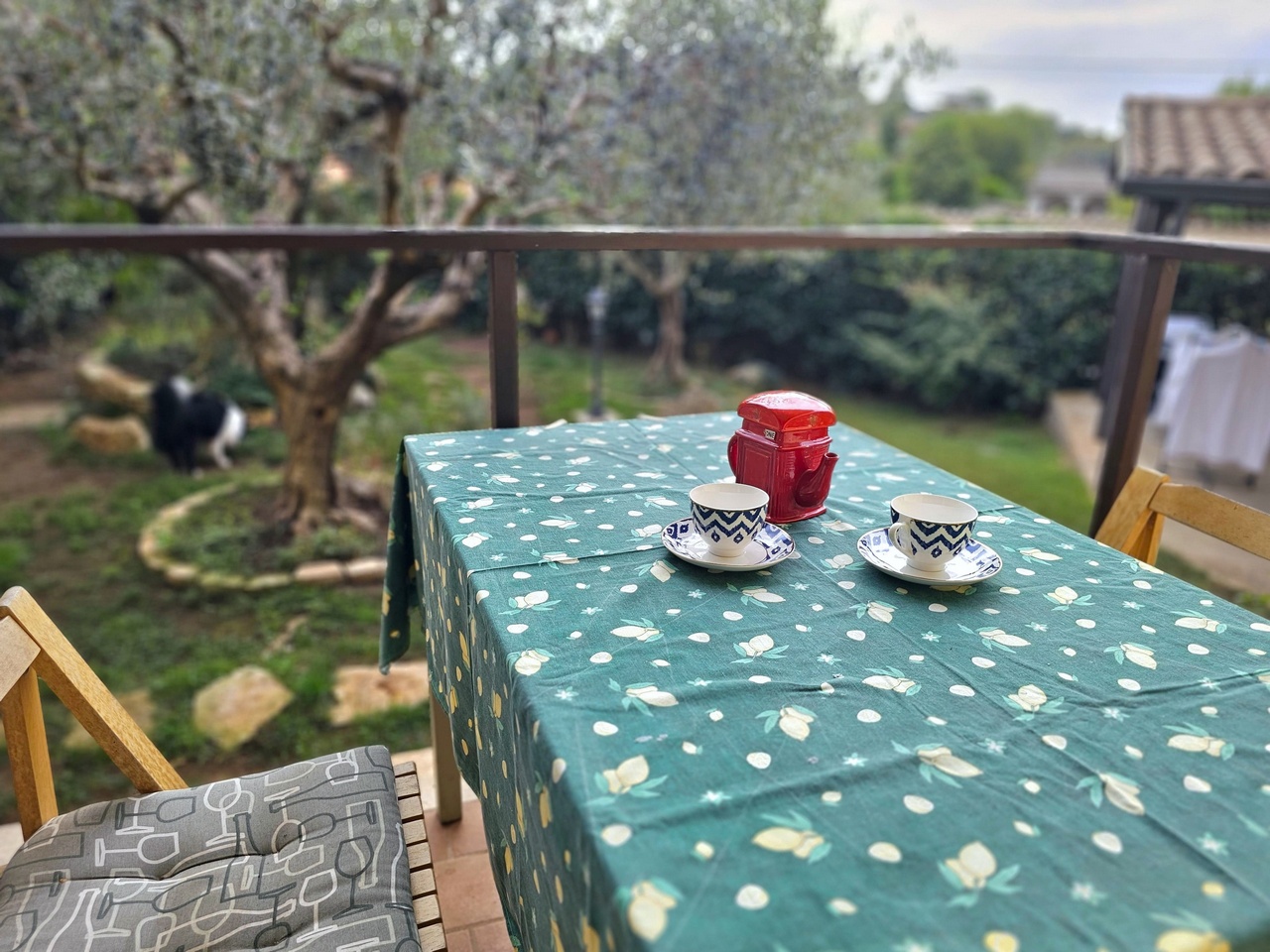 Mentre ti allunghi nel letto, da sopra giunge il profumo inconfondibile del caffè che si diffonde, preludio di una nuova giornata. Salendo al piano rialzato, il soggiorno ti accoglie con la vista della finestra che si apre verso ulivi secolari, testimonianze di un passato che ancora oggi contribuisce a creare un’oasi di pace. Accanto, il balcone diventa il palcoscenico di innumerevoli colazioni all’aria aperta, con una vista sul giardino che nutre e accarezza l’anima.