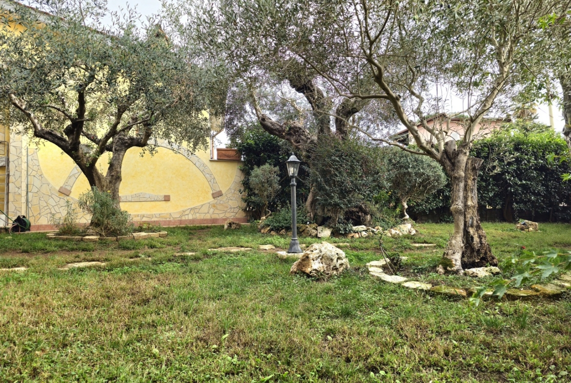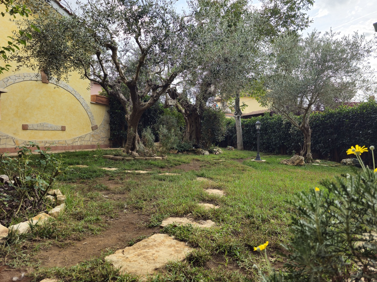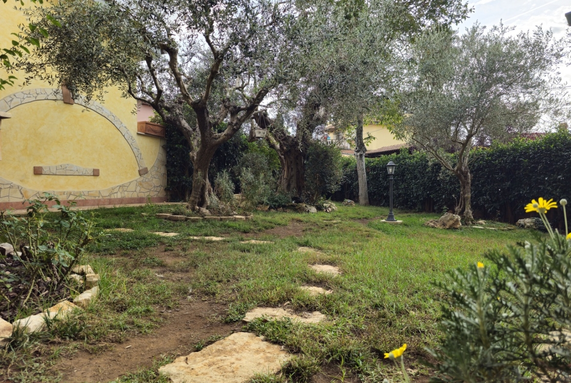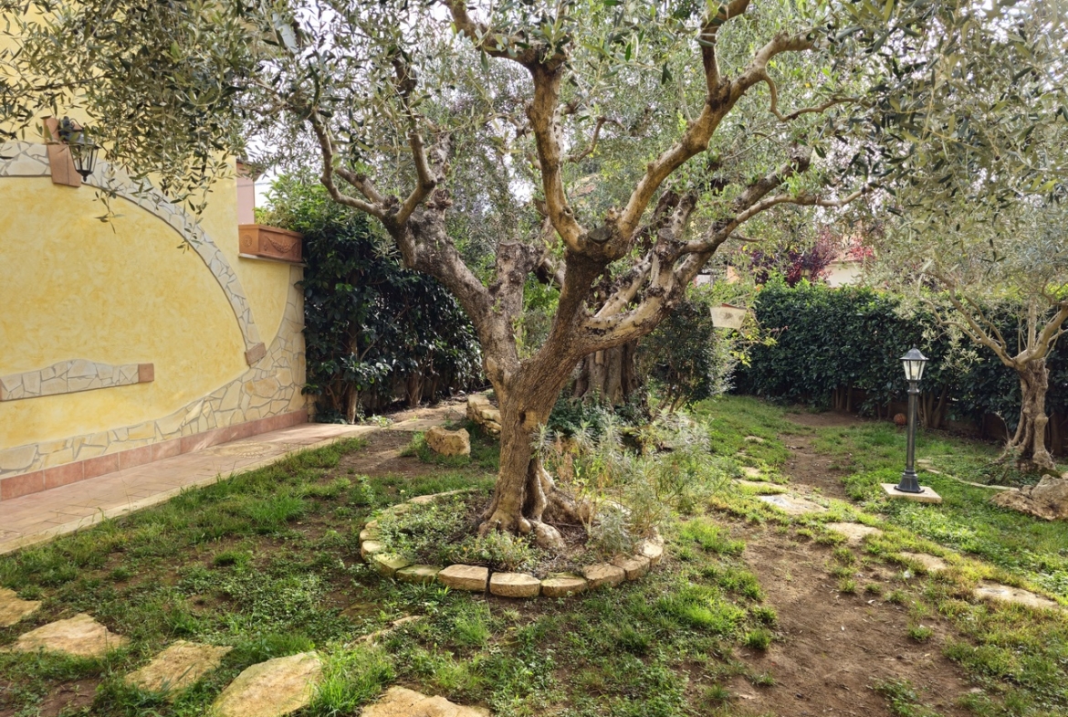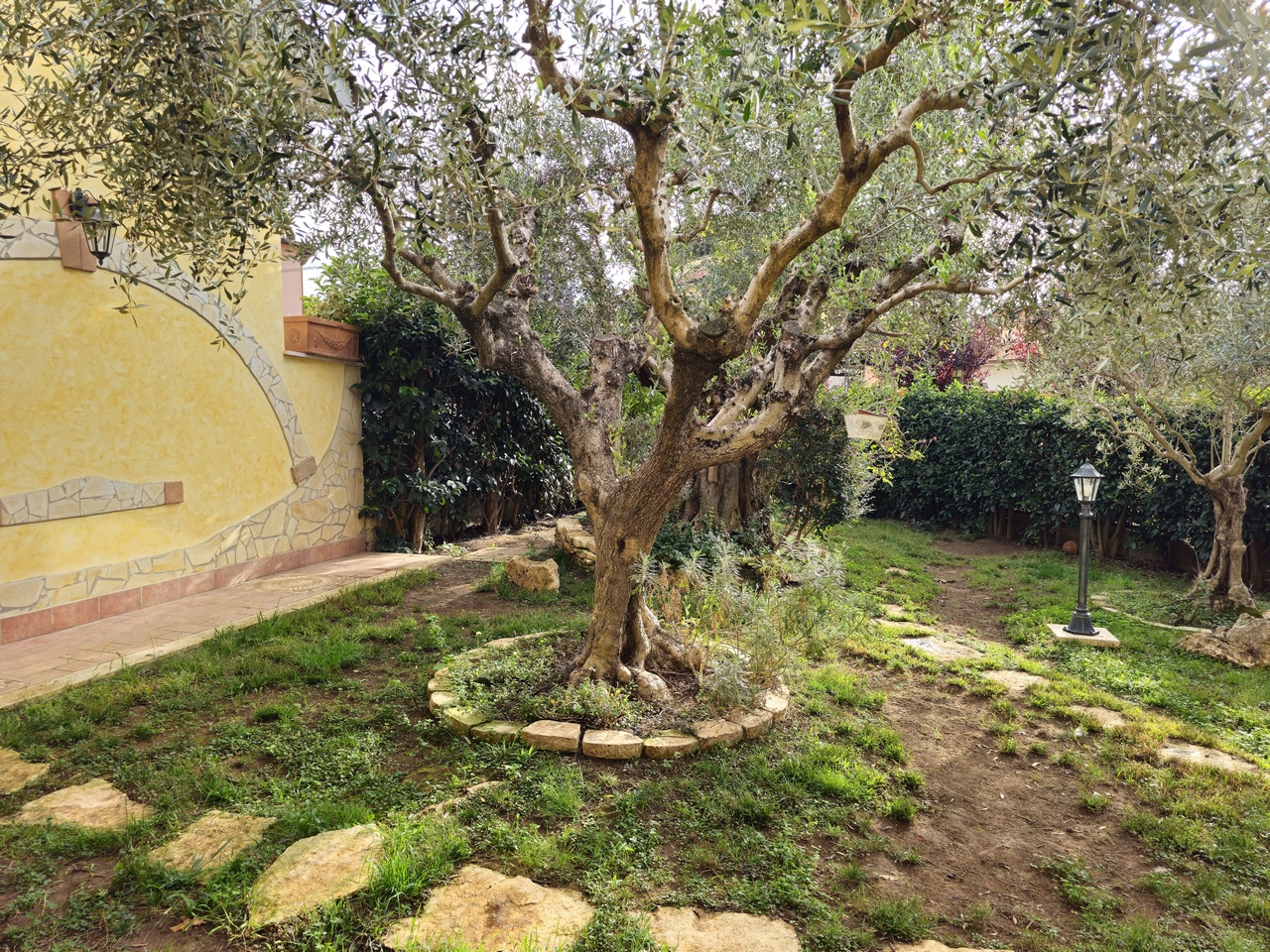E parlando di giardino… qui la natura fa da padrona. Gli ulivi offrono ombra e fresco durante le giornate estive, mentre la zona barbecue, protetta da una robusta gradevole tettoia, è lo spazio ideale di pranzi festosi e serate indimenticabili sotto le stelle. È uno spazio che ti invita a vivere all’aperto, a giocare, a rilassarti, a sognare magari su un’amaca con il tuo fedele cane che accanto a te si riposa dopo aver gioiosamente scorrazzato sul prato. La comodità del giardino continua con due comodi posti auto scoperti.