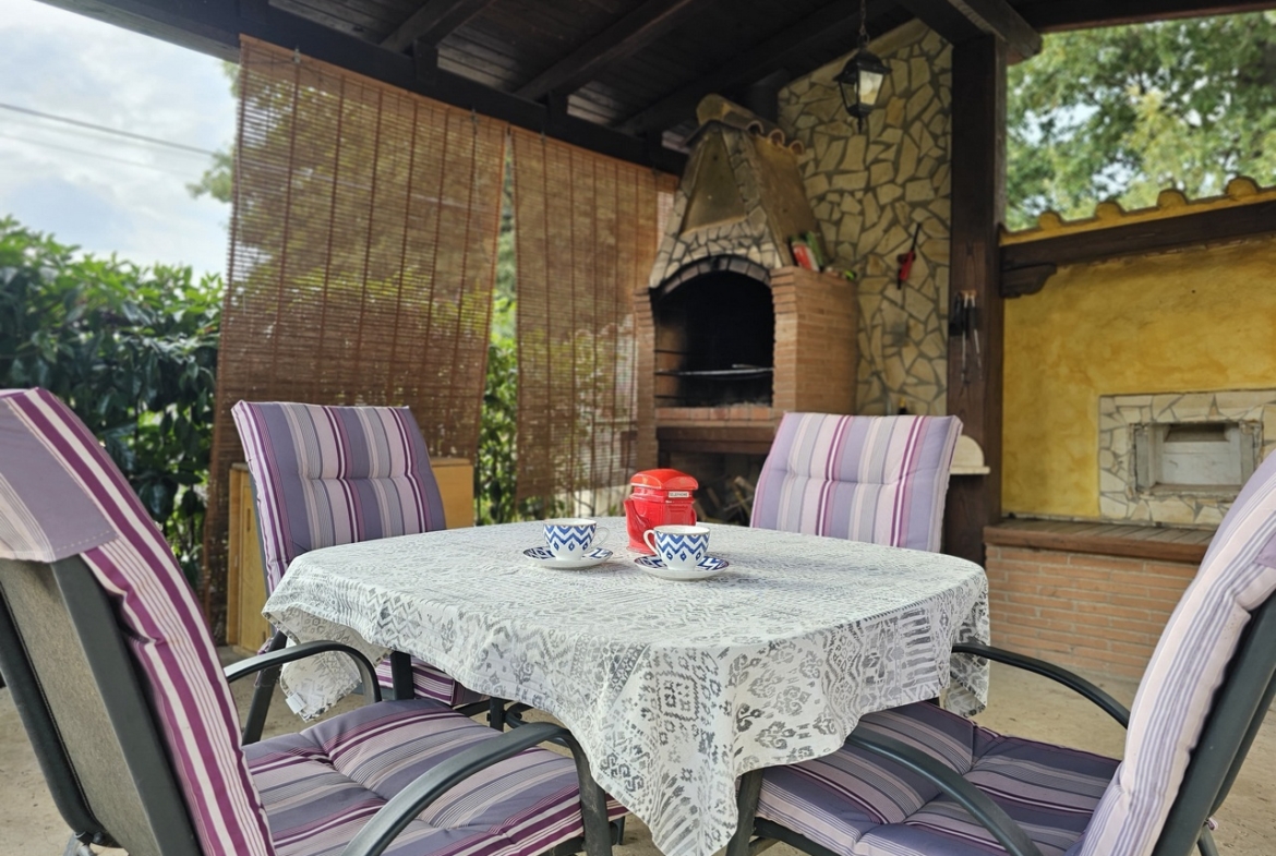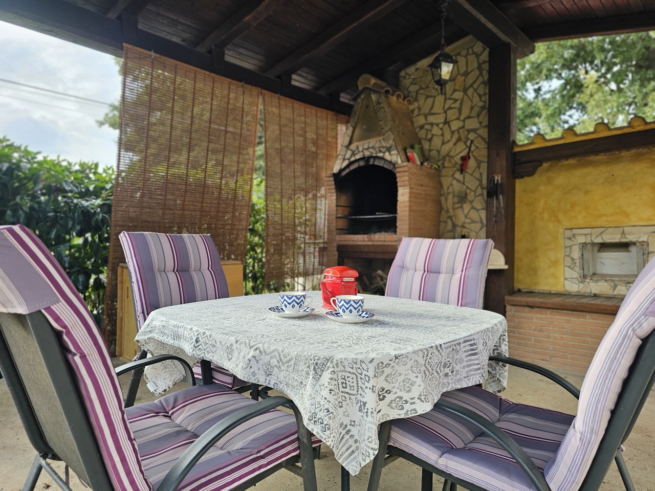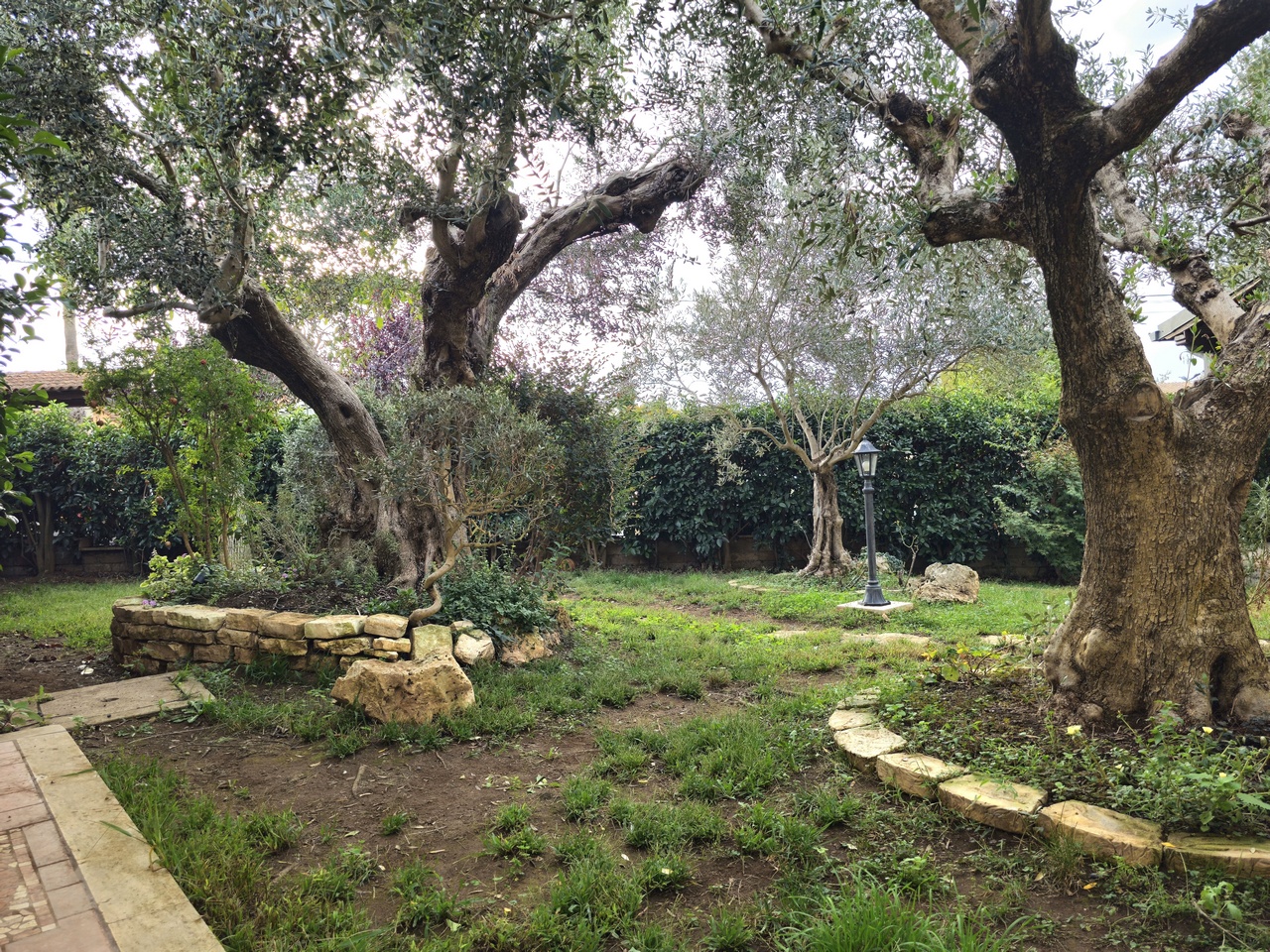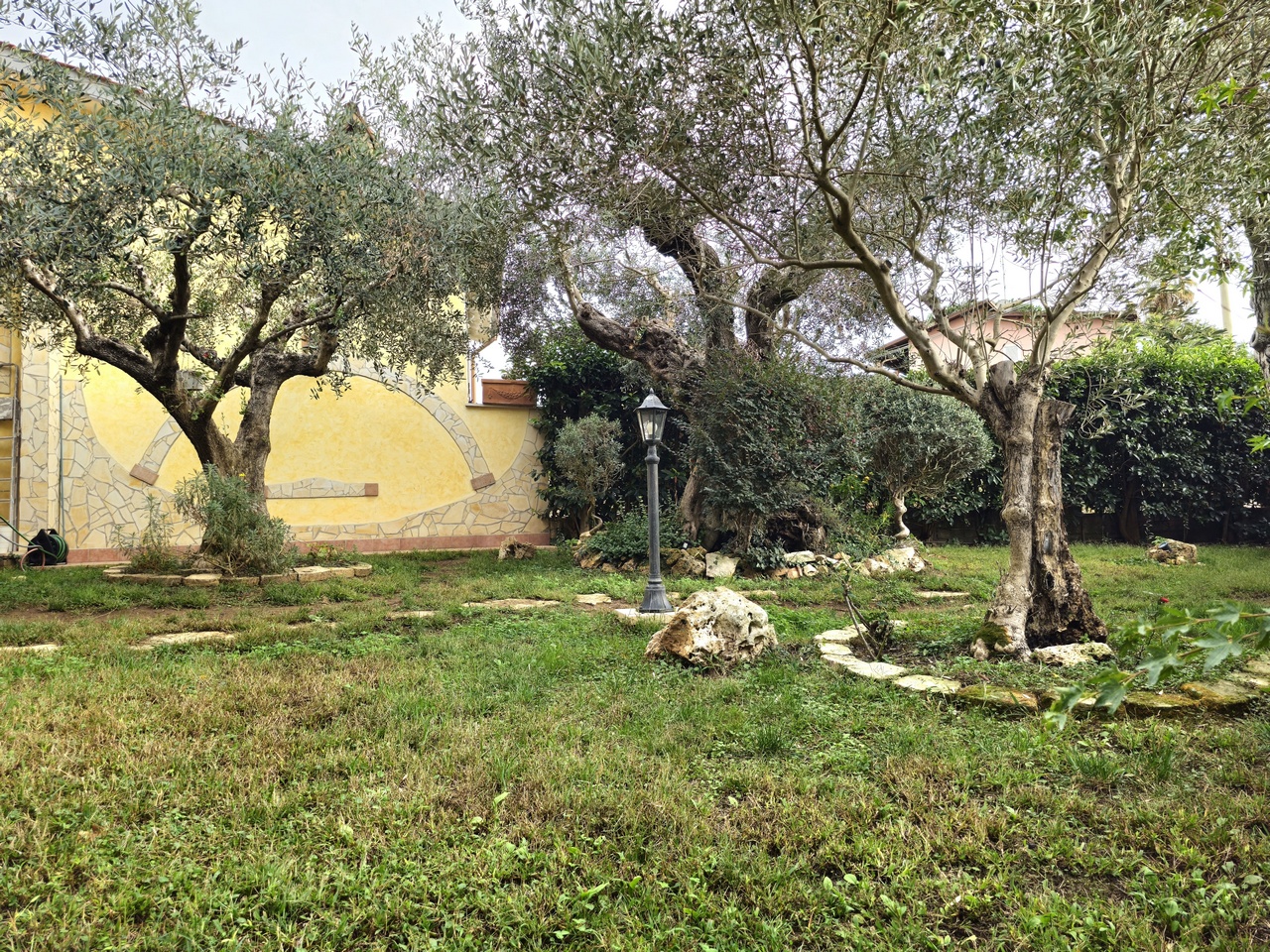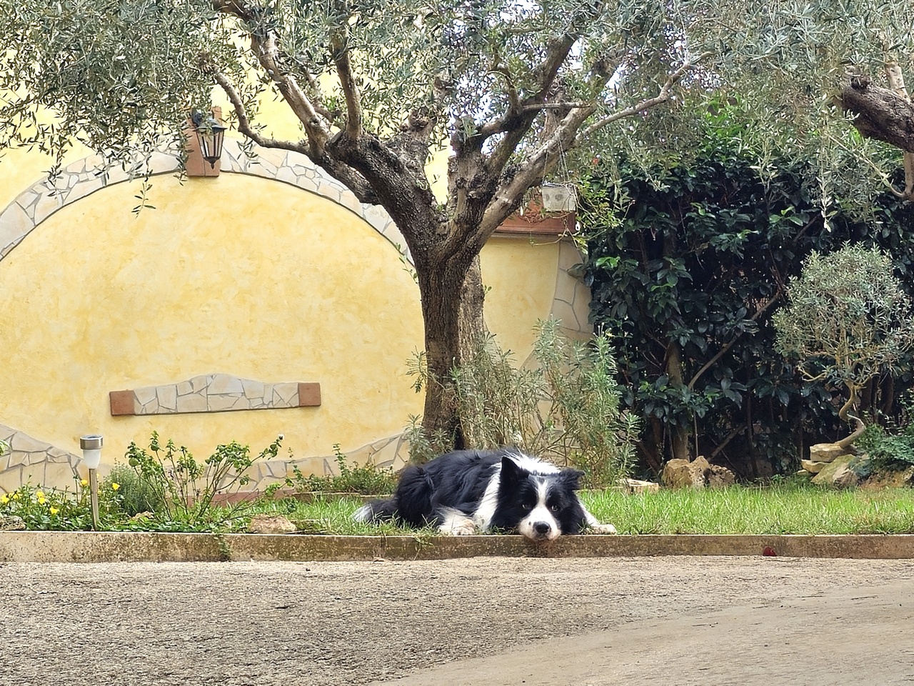 E parlando di giardino… qui la natura fa da padrona. Gli ulivi offrono ombra e fresco durante le giornate estive, mentre la zona barbecue, protetta da una robusta gradevole tettoia, è lo spazio ideale di pranzi festosi e serate indimenticabili sotto le stelle. È uno spazio che ti invita a vivere all’aperto, a giocare, a rilassarti, a sognare magari su un’amaca con il tuo fedele cane che accanto a te si riposa dopo aver gioiosamente scorrazzato sul prato. La comodità del giardino continua con due comodi posti auto scoperti.