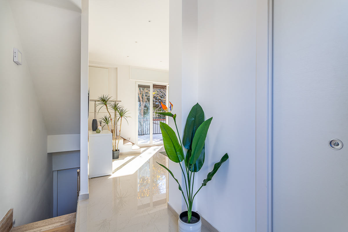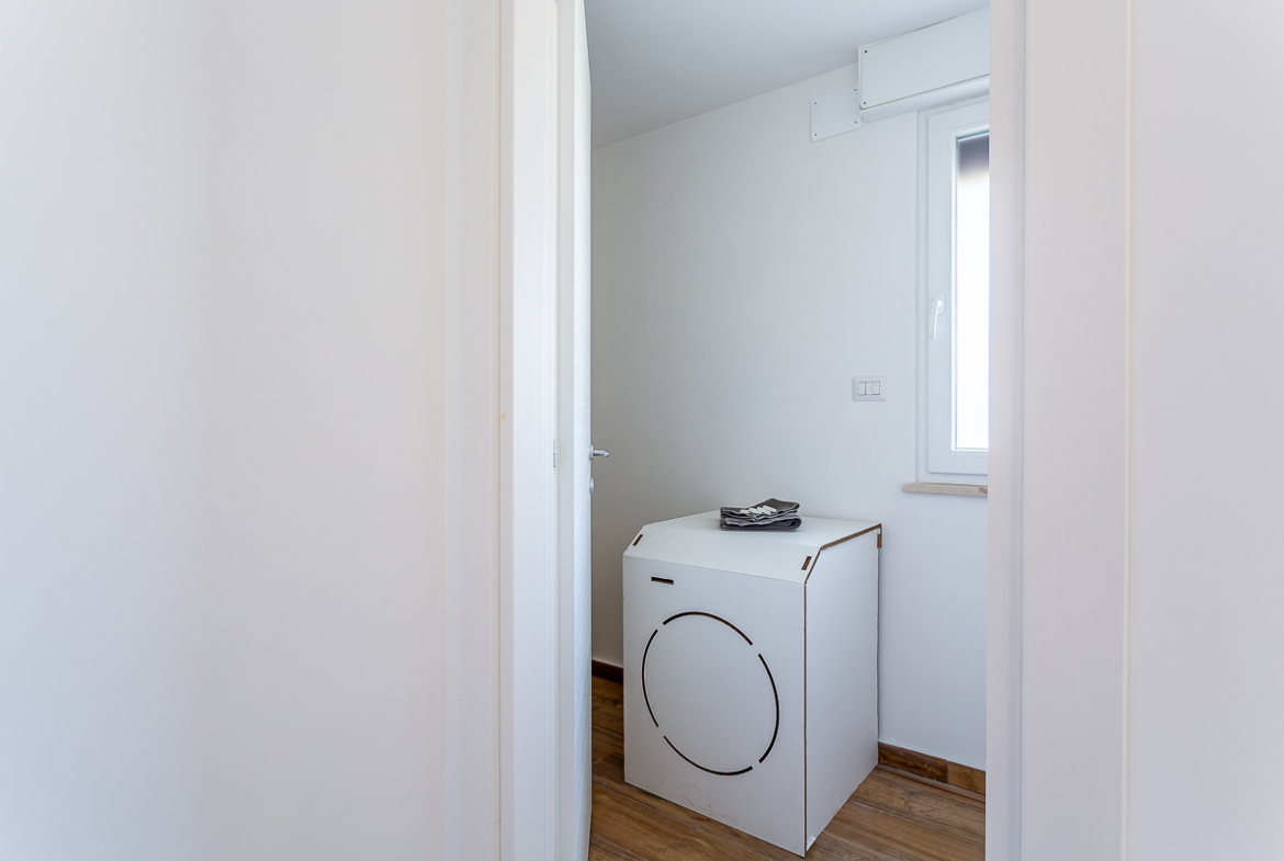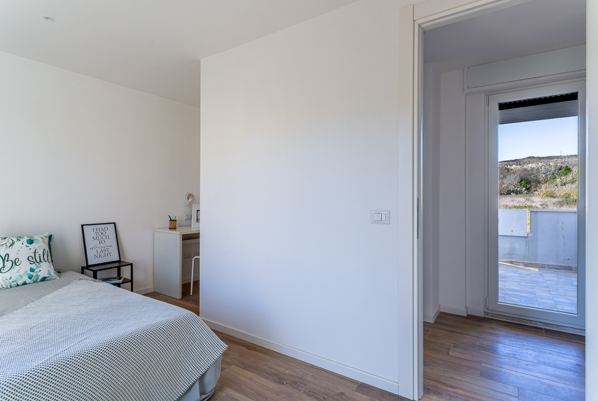 Da qui si accede a un ampio terrazzo panoramico, collegato al lastrico solare, predisposto per l’installazione di pannelli solari con boiler: una scelta attenta a sostenibilità ed efficienza energetica.