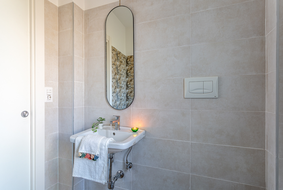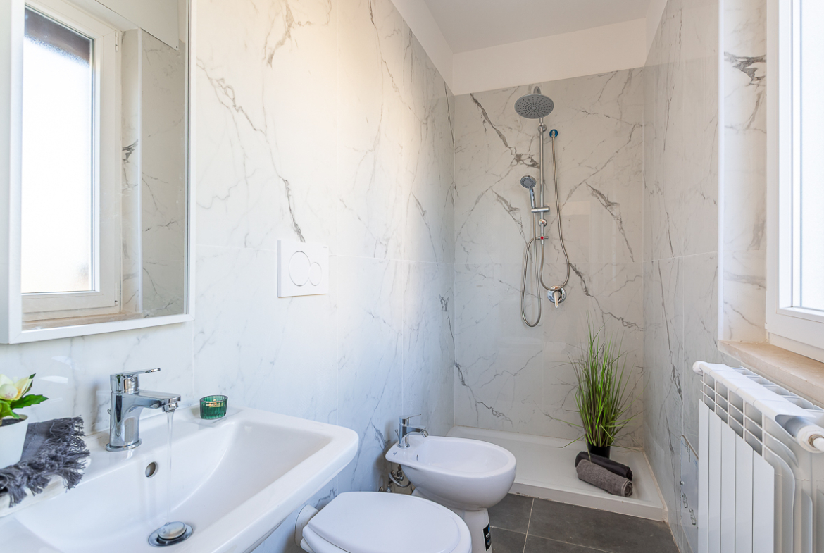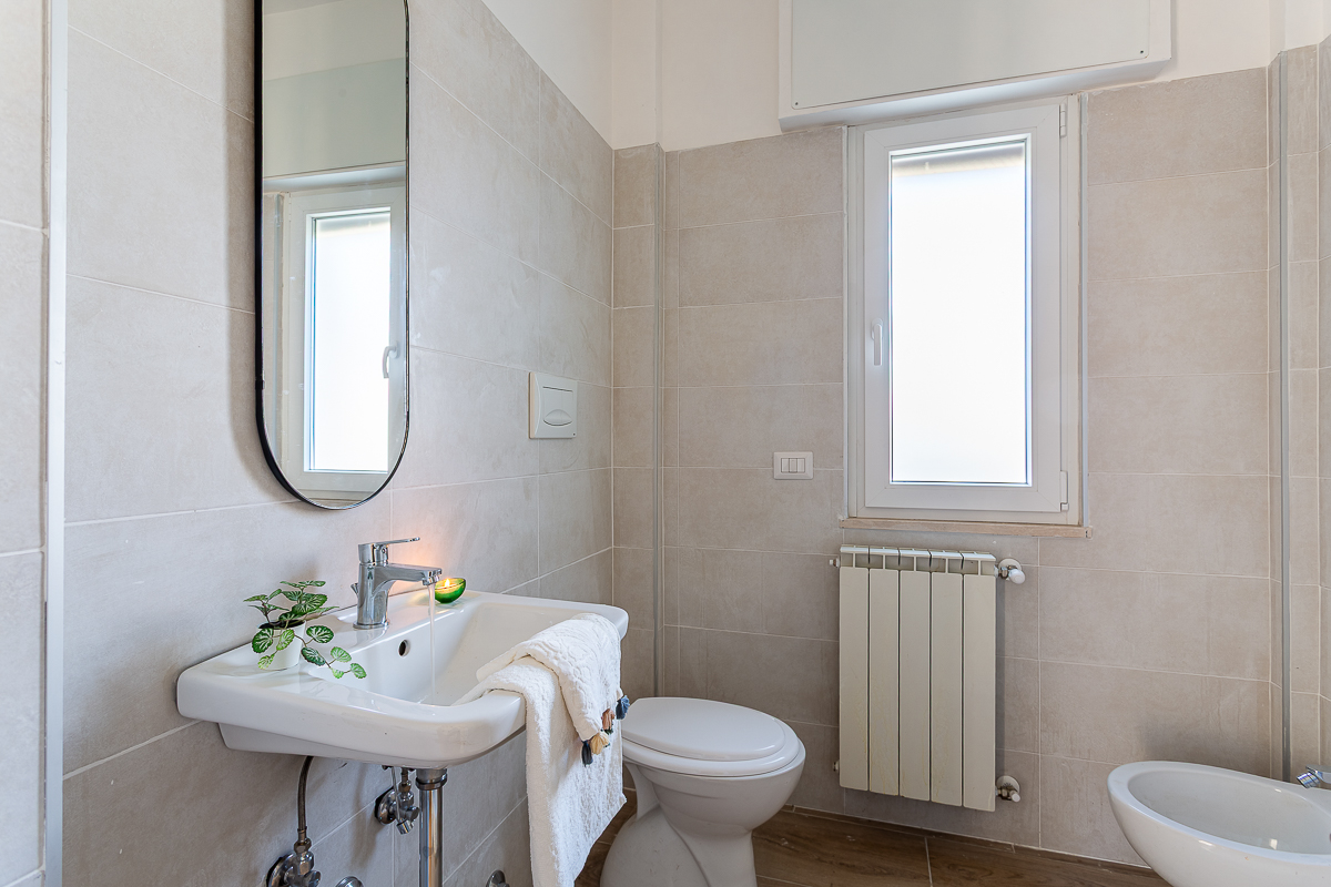 Completa il livello un bagno finestrato con doccia, progettato per unire stile e praticità.