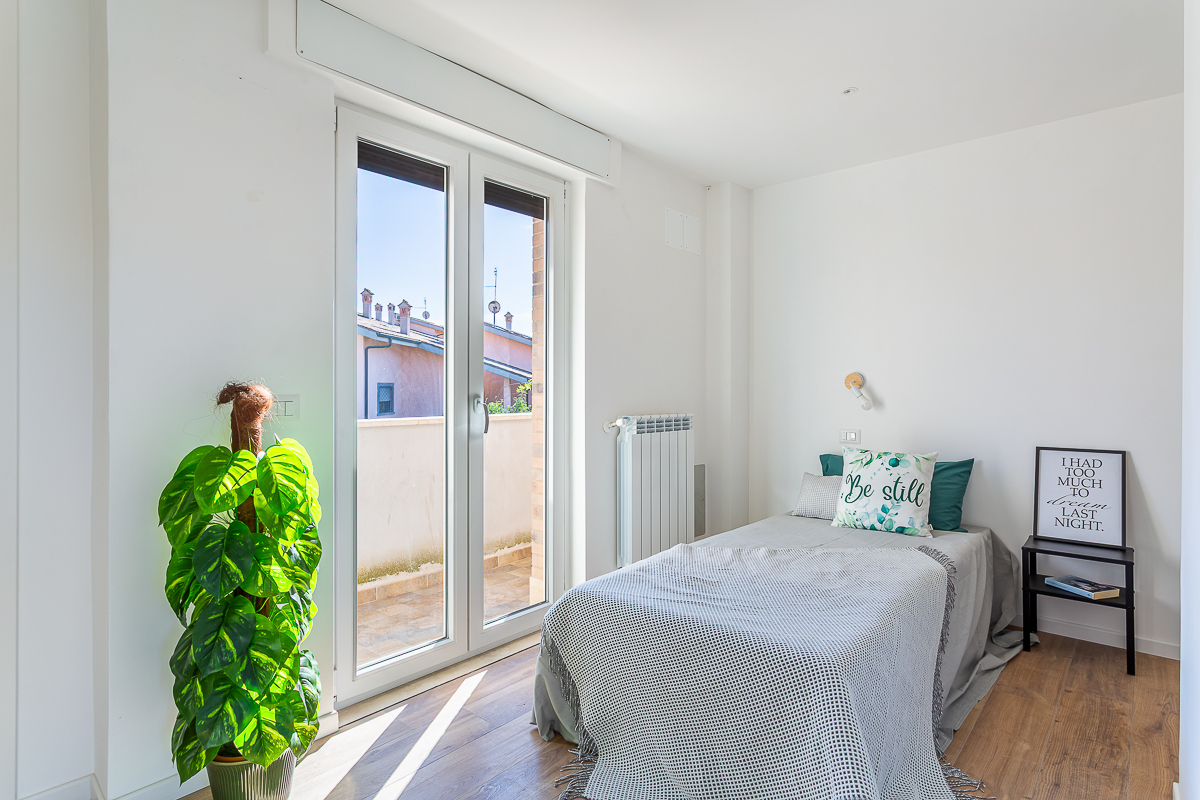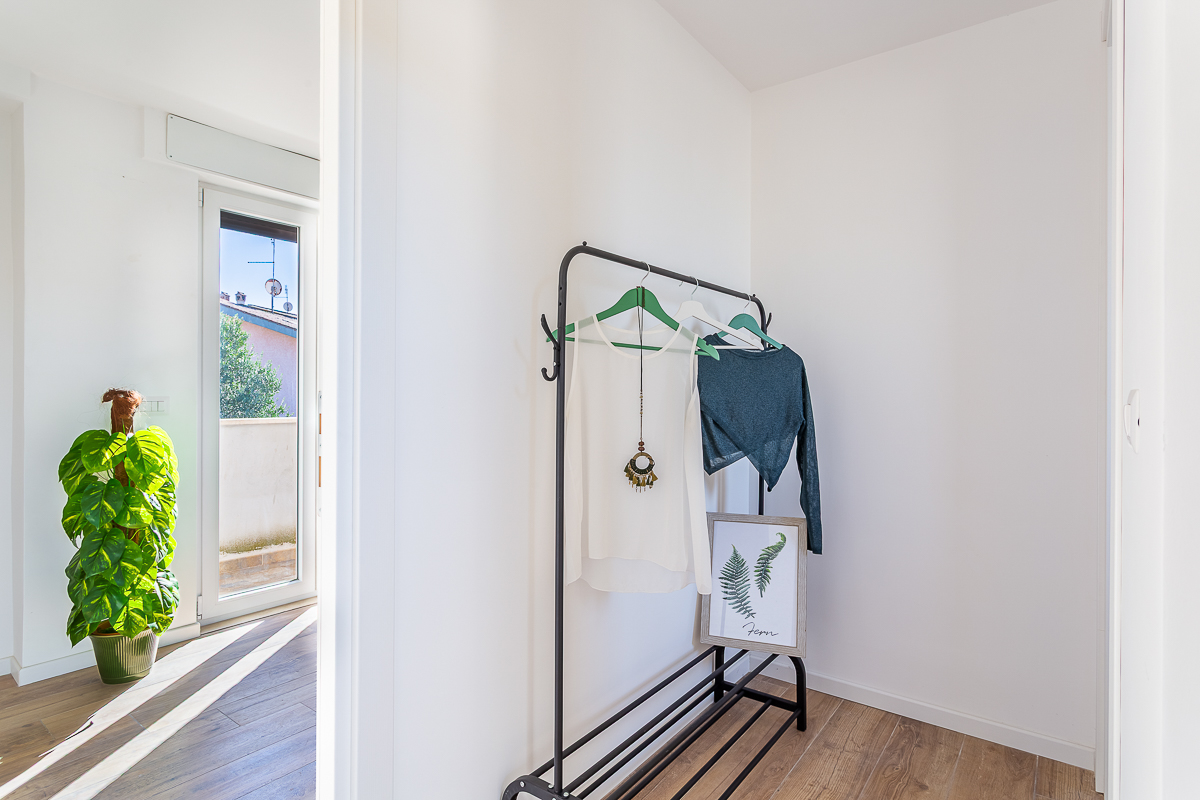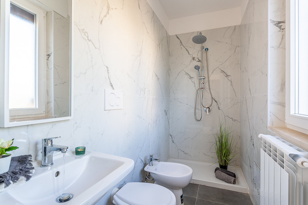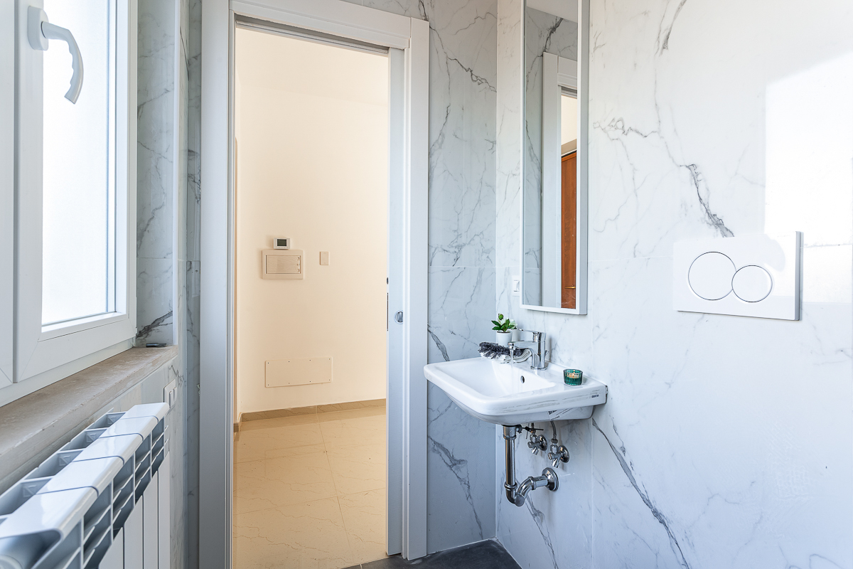 Il piano è completato da un bagno finestrato con doccia, rifinito con materiali di qualità.