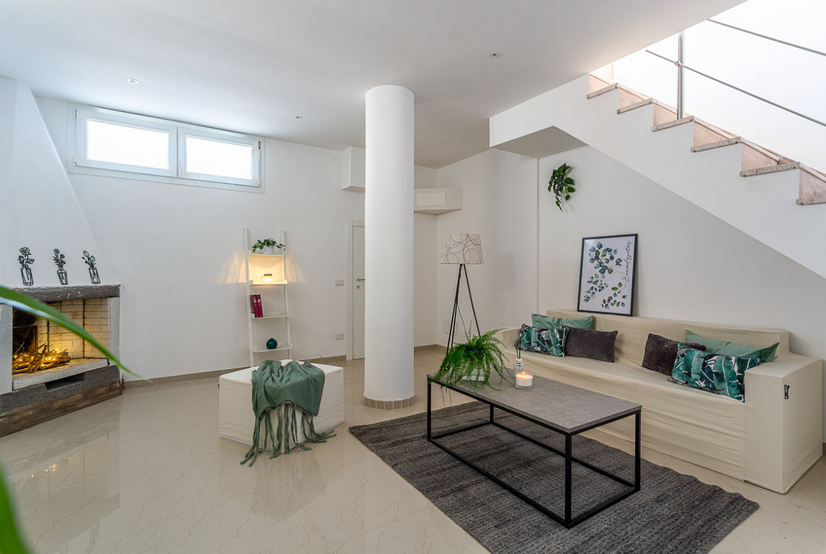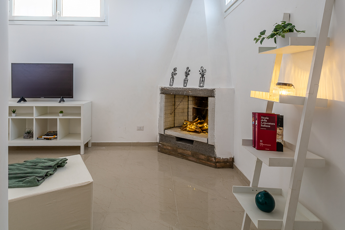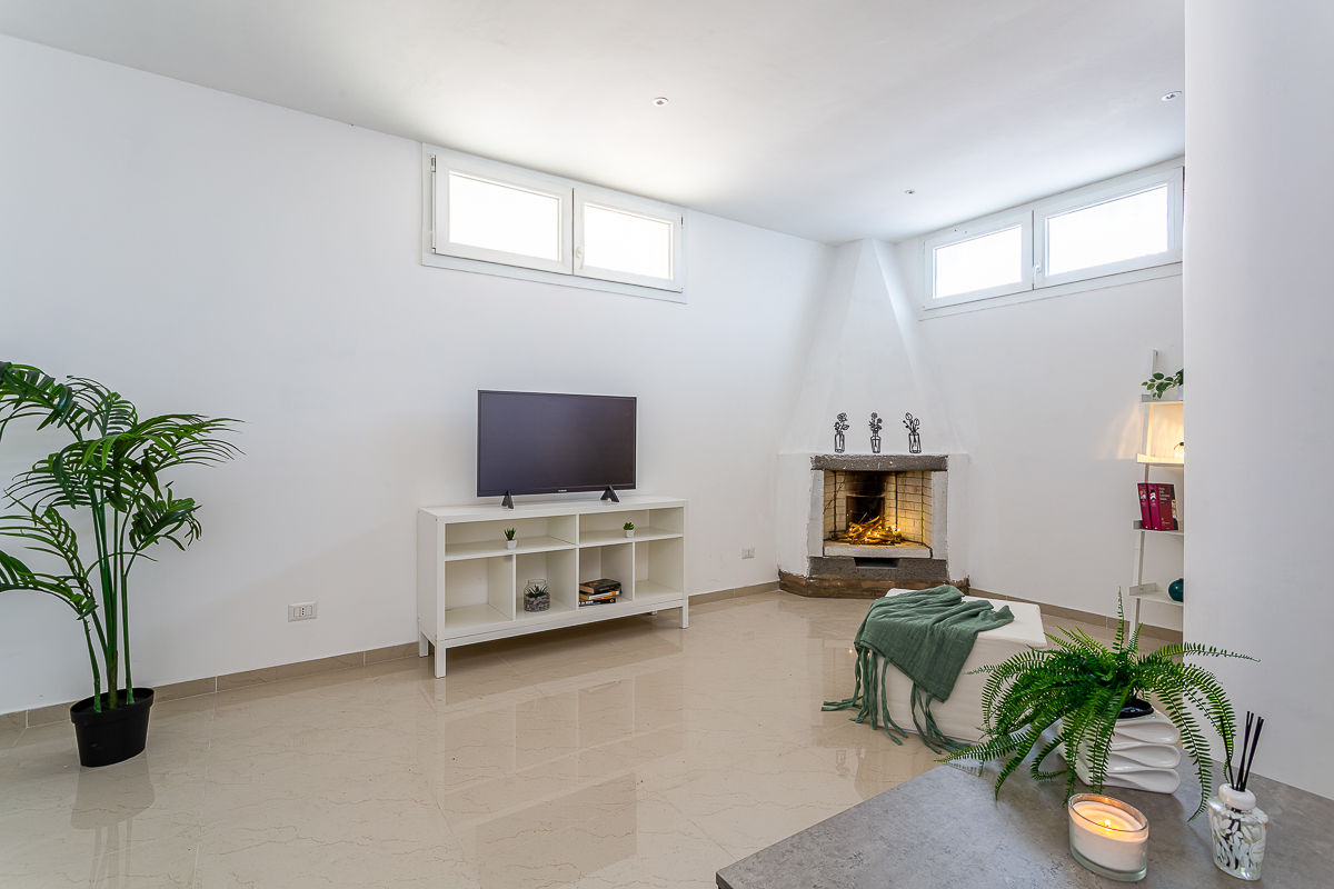 Una sala hobby con camino crea un ambiente perfetto come sala relax, area ricreativa, studio o spazio multifunzionale, aggiungendo comfort e potenzialità all’immobile.