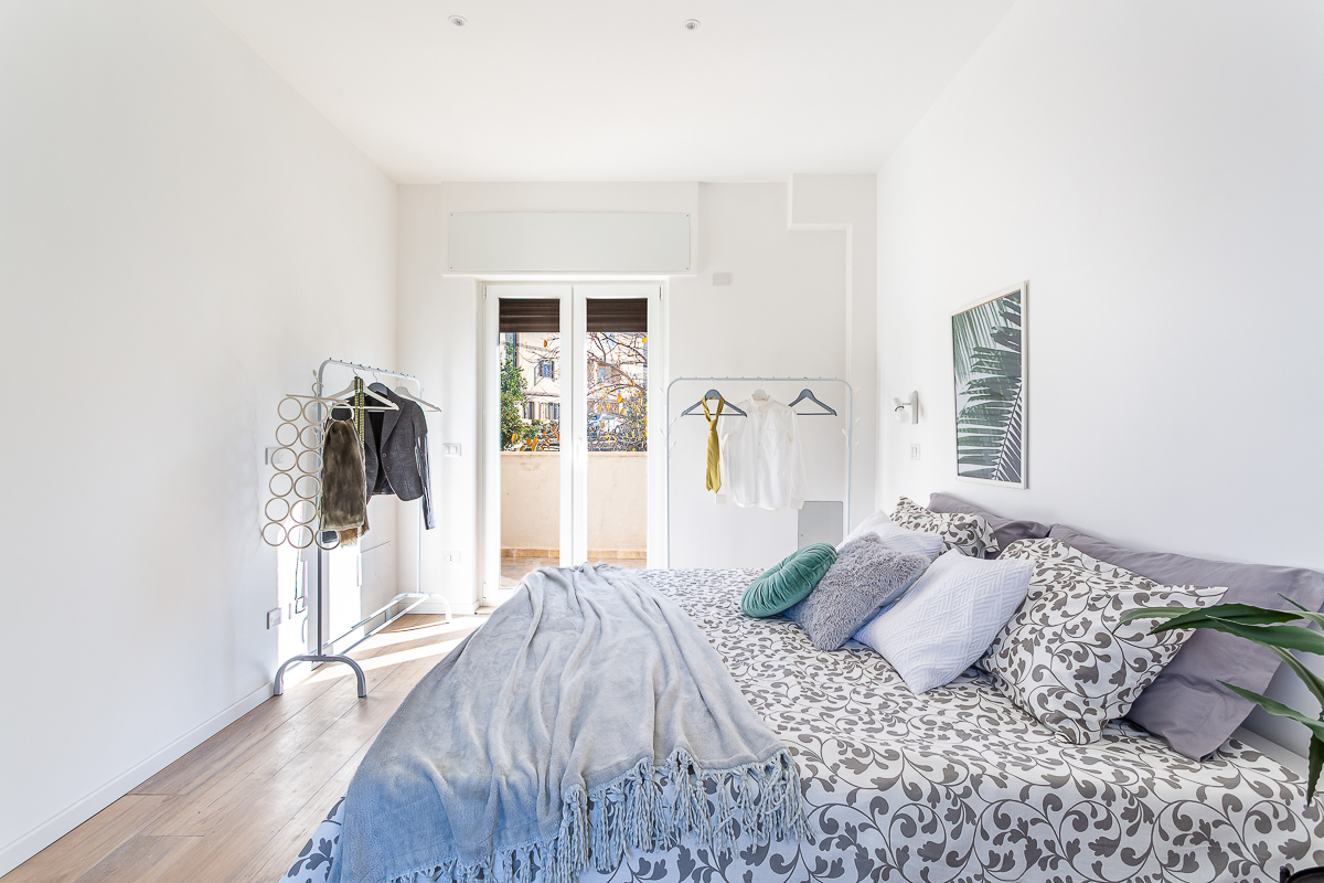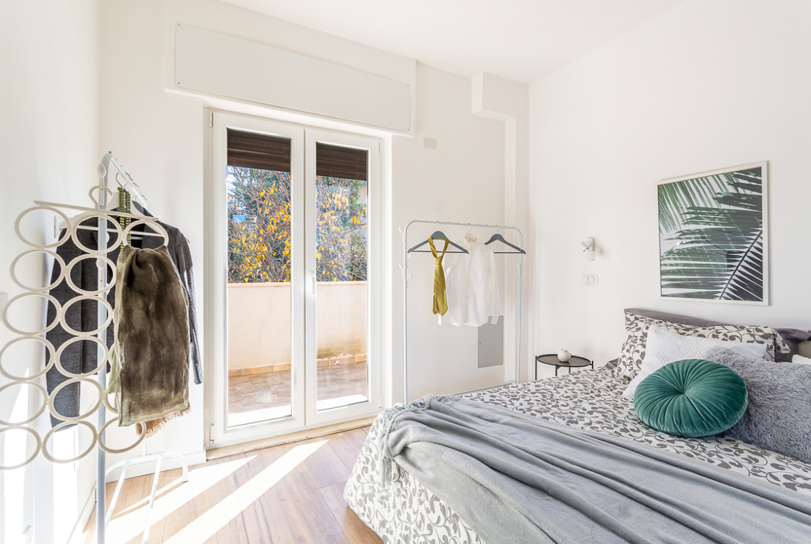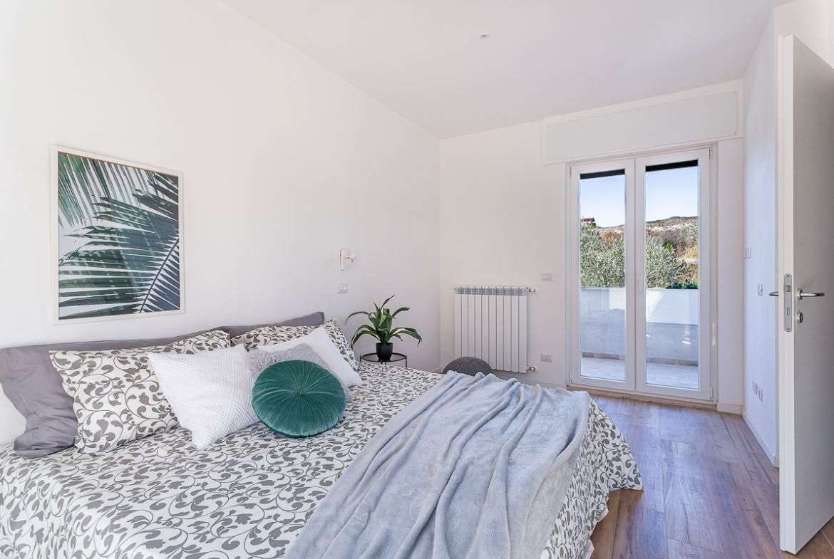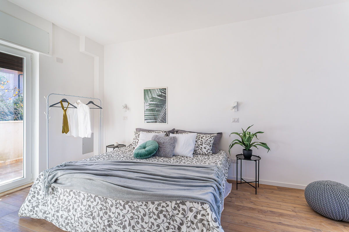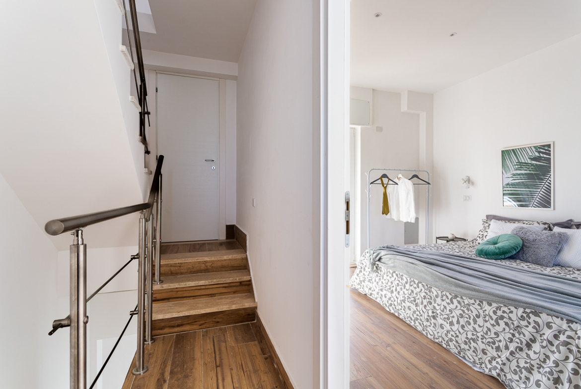 Un elegante disimpegno conduce alla camera matrimoniale, impreziosita da una doppia uscita su due balconi privati.