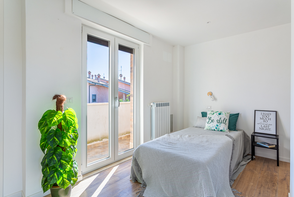 Gli infissi in PVC a risparmio energetico, le tapparelle elettriche e le serrande antiscasso garantiscono comfort, sicurezza e isolamento acustico.